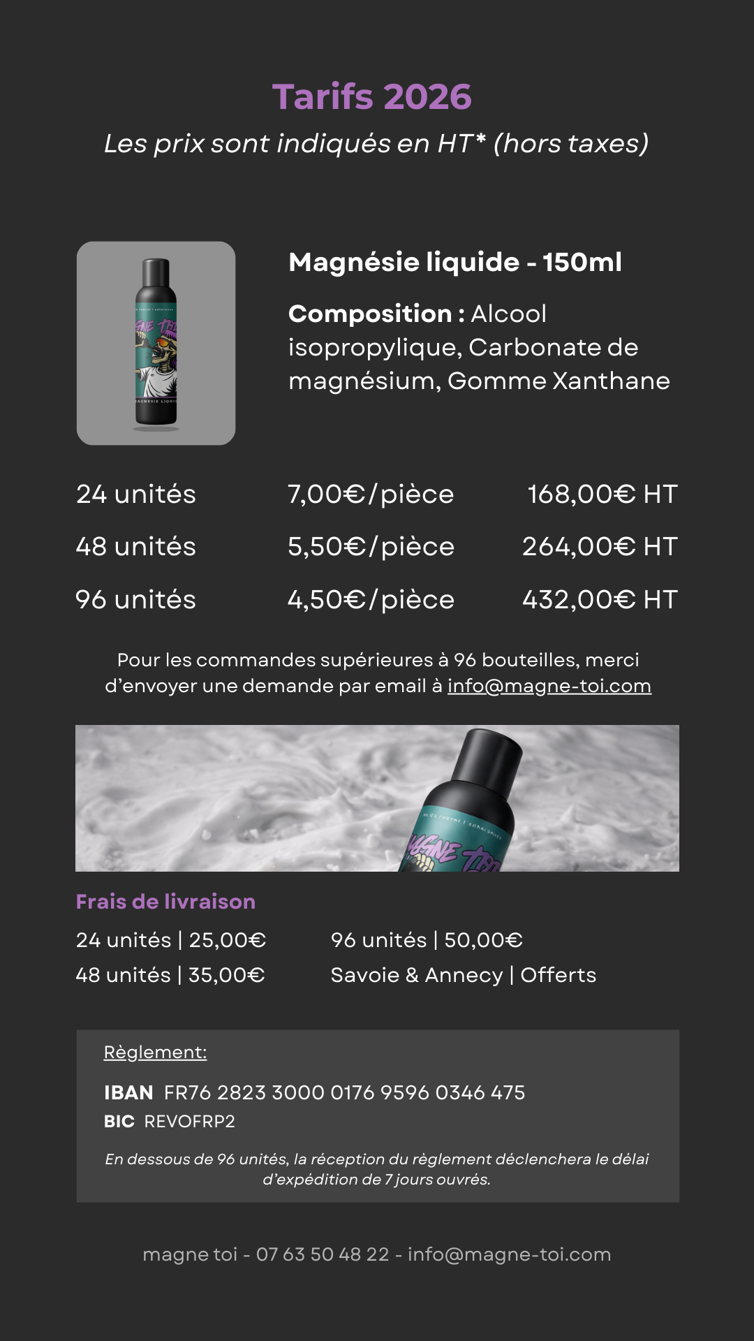Notre magnésie est fabriquée en Savoie de manière artisanale avec des produits sourcés en Europe.